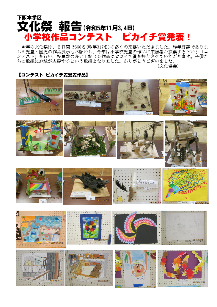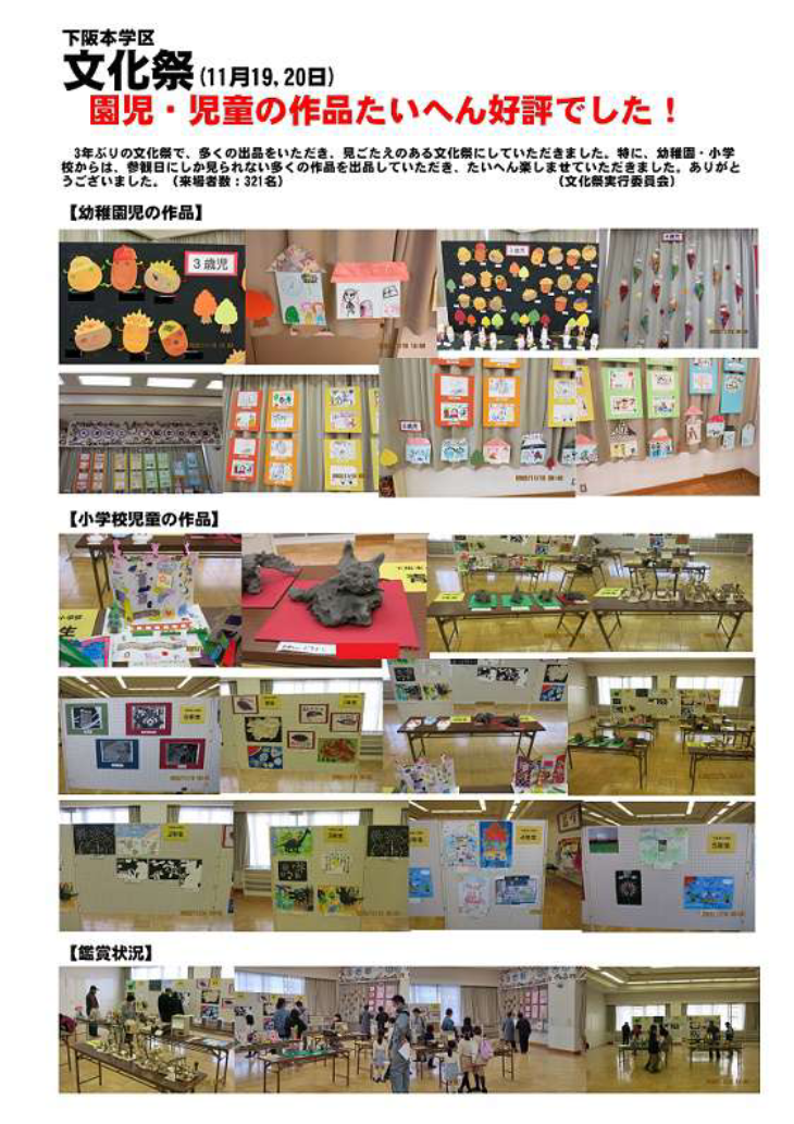 昨年 3 年ぶりに文化祭を開催し、小学校、幼稚園、